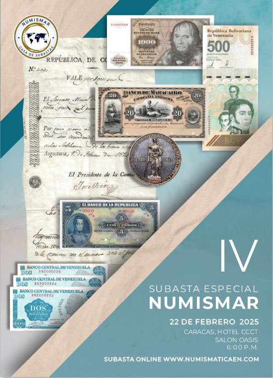 2nd Numismatic Convention Numismar" will be held in Caracas on February 22nd and 23rd at the Hotel CCT, Oasis Halls.